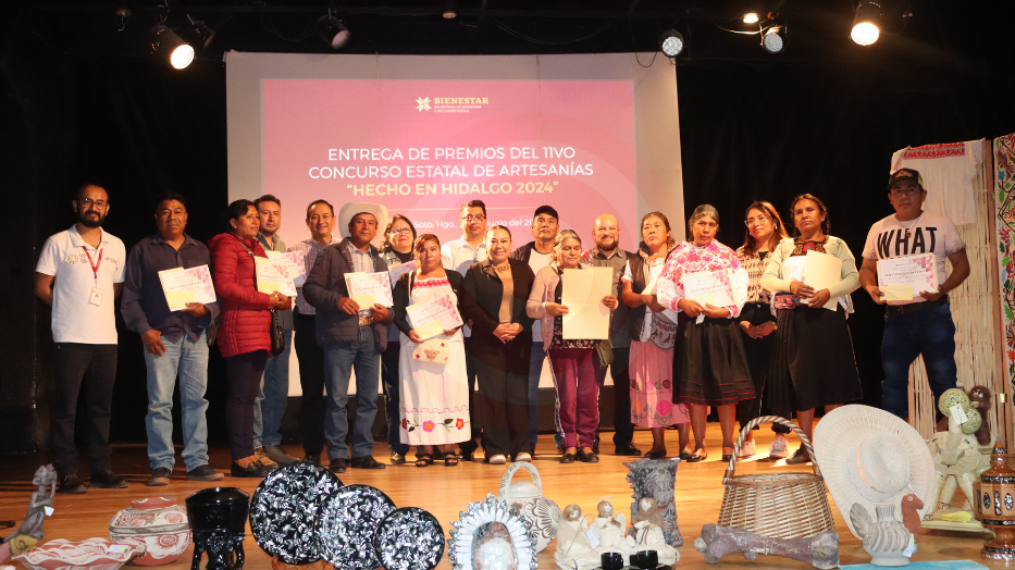 Pachuca de Soto, Hgo.- En un ambiente festivo se otorgó el Premio Estatal de Artesanías “Hecho en Hidalgo 2024”, ahí el titular de la Secretaría de Bienestar e Inclusión Social (Sebiso), Ricardo Gómez Moreno, entregó incentivos económicos para los creadores de las piezas más destacadas del certamen.