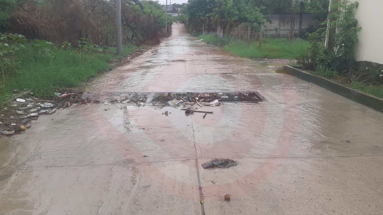 En la calle que conecta a la comunidad de Chacatitla y la colonia FOVISSSTE, a media calle, literalmente, hay un riachuelo que acarrea agua y todo tipo de basura (ramas, hojas de árboles y desechos como botellas, vasos, platos, latas, etc…) y toda esa basura termina bloqueando las rejillas de los drenes pluviales.