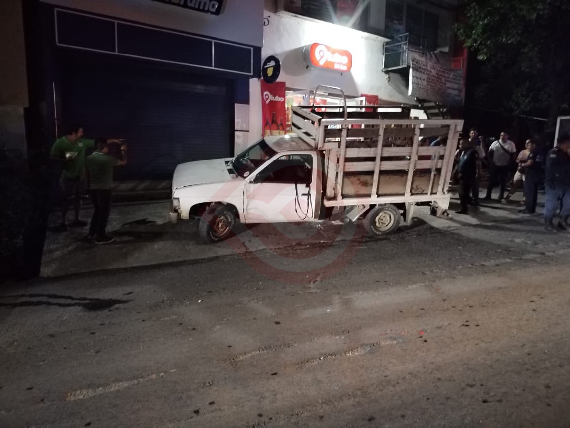 Huejutla, Hgo. – Una camioneta que era conducida por un ebrio individuo presuntamente se quedó sin frenos sobre la subida a la colonia Providencia, se fue de reversa e impactó a un vehículo automotriz y una tienda, ocasionando daños materiales, el individuo fue asegurado por la policía municipal.