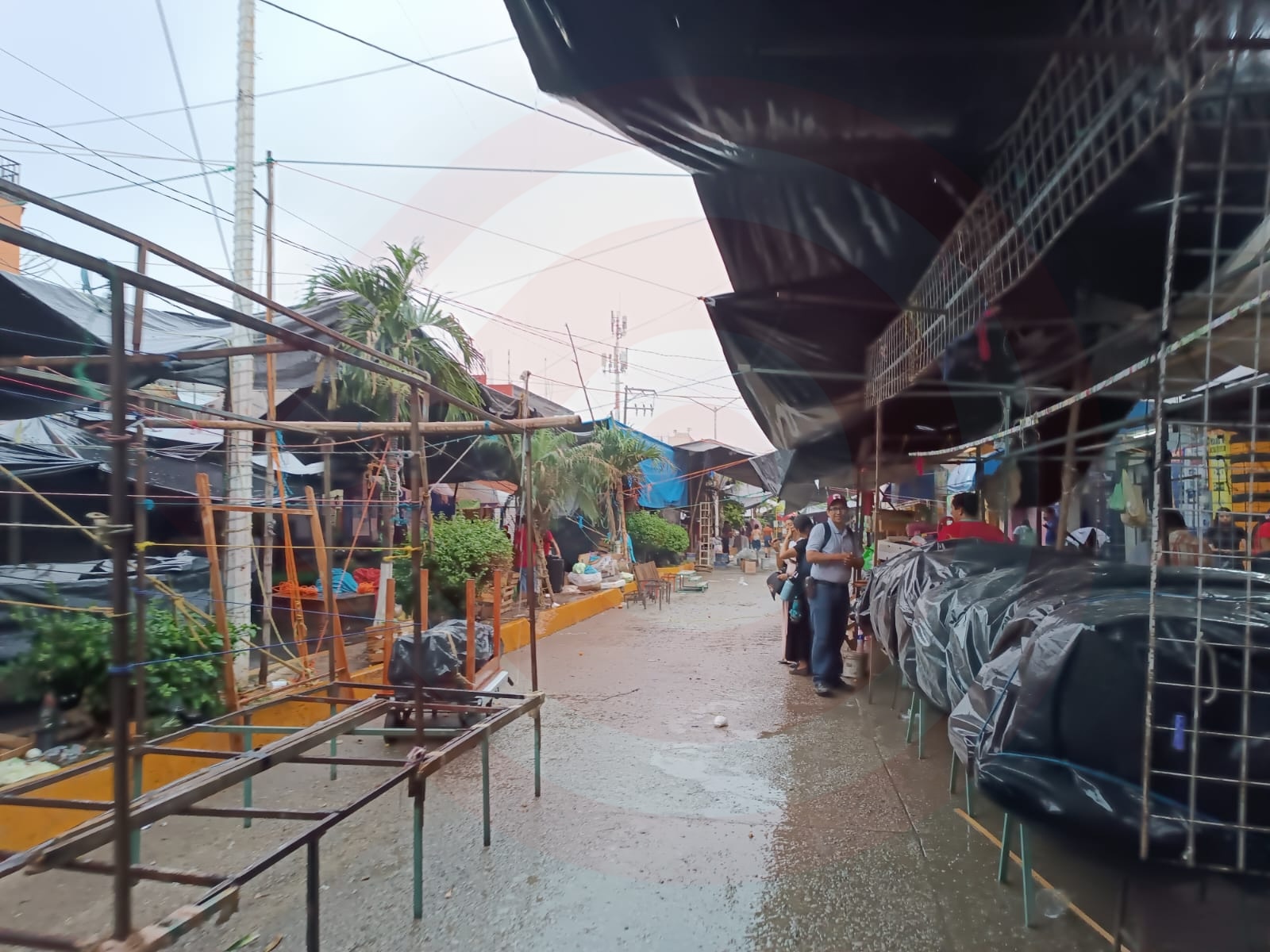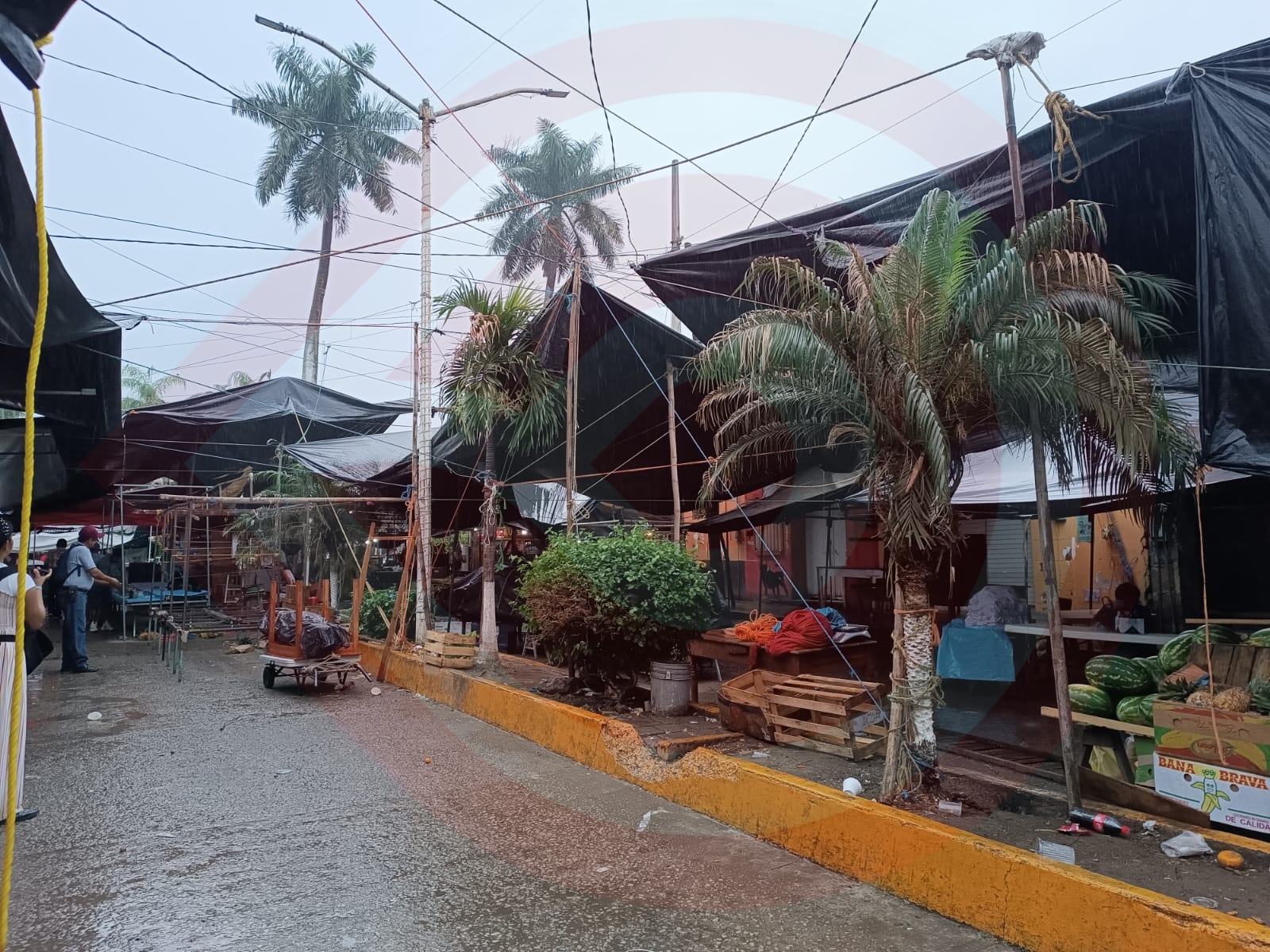 Desde la madrugada se presentaron fuertes lloviznas y viento, por lo que decenas de comerciantes optaron por no instalar sus puestos en la plaza dominical, por lo que quedaron varios espacios disponibles, así como otros que recogieron temprano su mercancía.