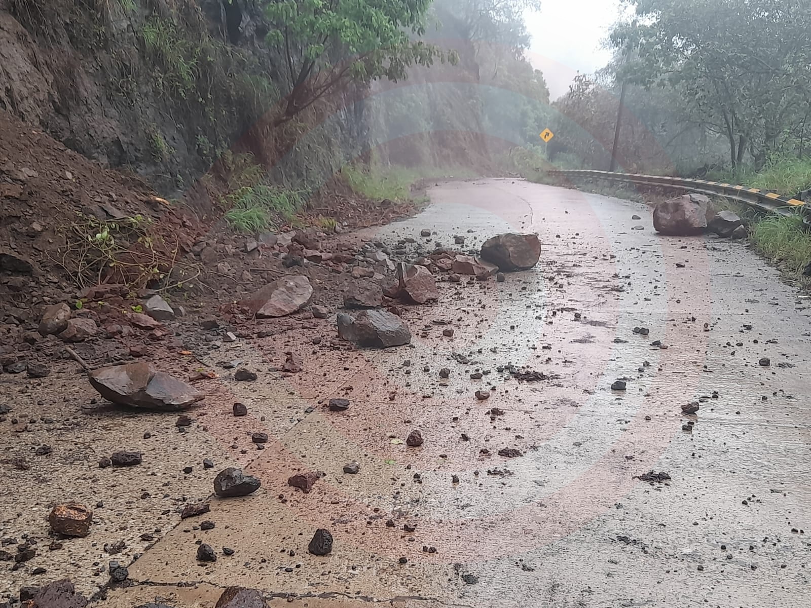 Lo anterior, se comprobó la mañana de este domingo, cuando momentos antes de que pasara una unidad del transporte público de la ruta Huautla – Huejutla, de improviso, se desprendieron del cerro dos enormes rocas y una infinidad de pedruscos, obstruyendo la circulación vial.