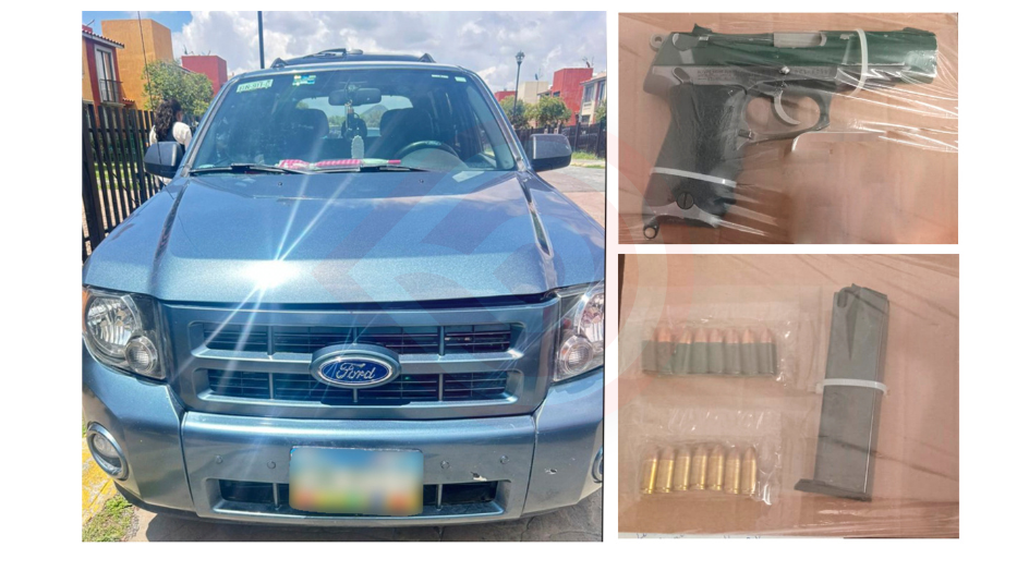 En la unidad viajaban dos hombres y dos mujeres, quienes tenían en posesión un arma de fuego corta calibre 9 milímetros, abastecida con 15 cartuchos útiles, de la cual no pudieron acreditar su portación legal.