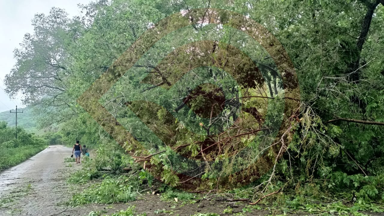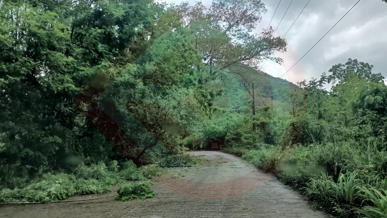 En el trayecto de la carretera estatal Atlapexco – Calnali, la tormenta tropical derrumbó árboles sobre la cinta asfáltica, obstruyendo la vialidad.