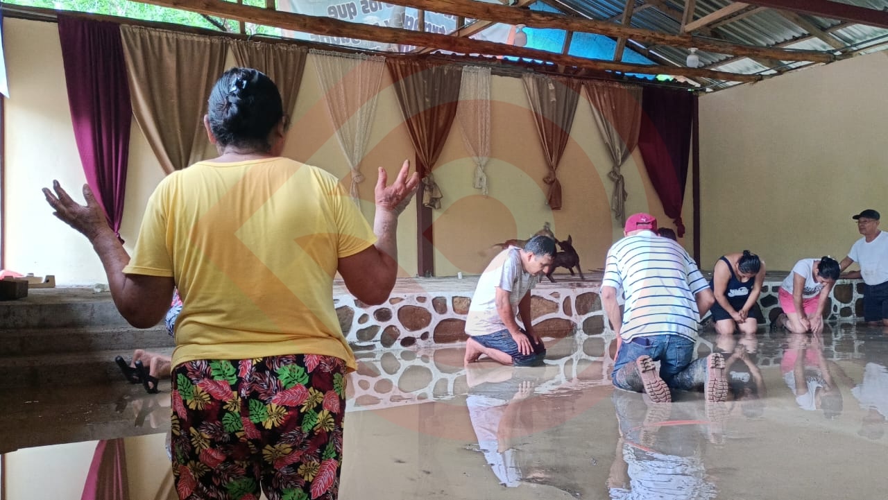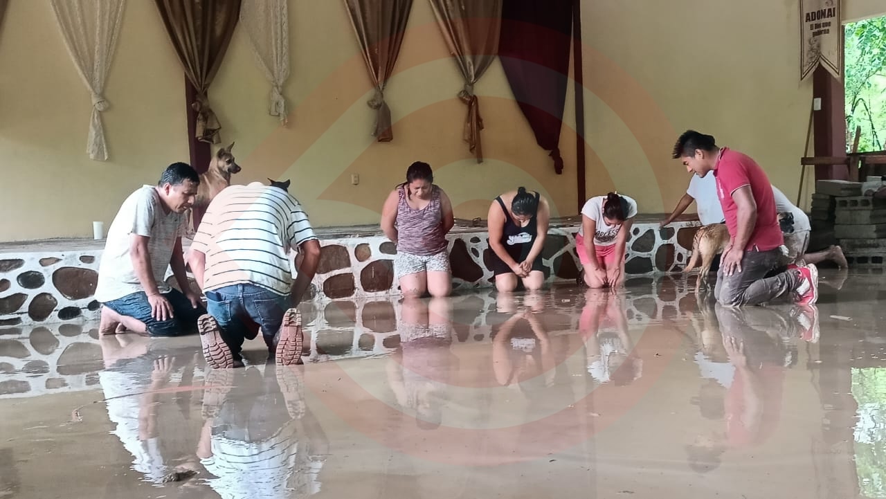 Ahí dentro del templo y tras el paso de la tormenta, los hermanos de la iglesia entre los charcos de barro realizaron una oración para pedir al creador por el bienestar de las familias que estaban padeciendo las inundaciones.