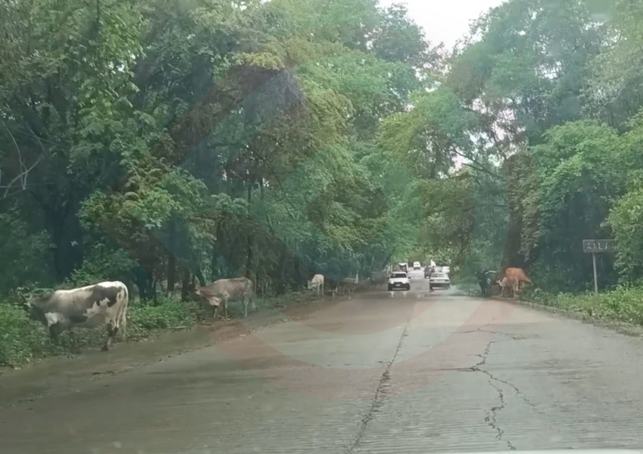 A la altura del vivero de Tecolotitla, de los potreros arrearon a los animales bovinos, para evitar pérdidas en el sector ganadero.