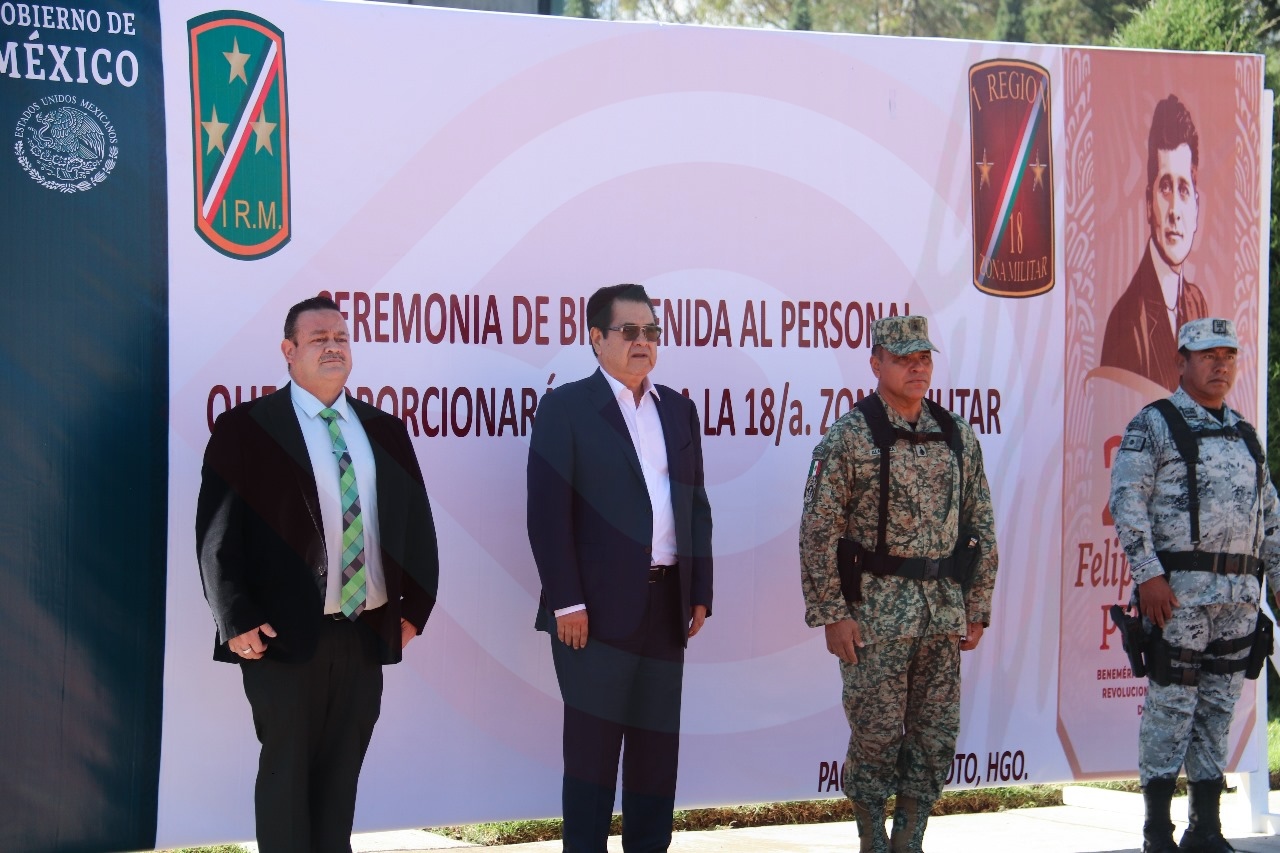 Pachuca de Soto, Hgo.- Con la representación del titular del Ejecutivo estatal, Julio Menchaca Salazar, el secretario de Gobierno, Guillermo Olivares Reyna, y representantes de la 18/a Zona Militar, dieron la bienvenida al personal del sexto Regimiento de Caballería Motorizado (6/0 R.C.M), proveniente de Oaxaca.