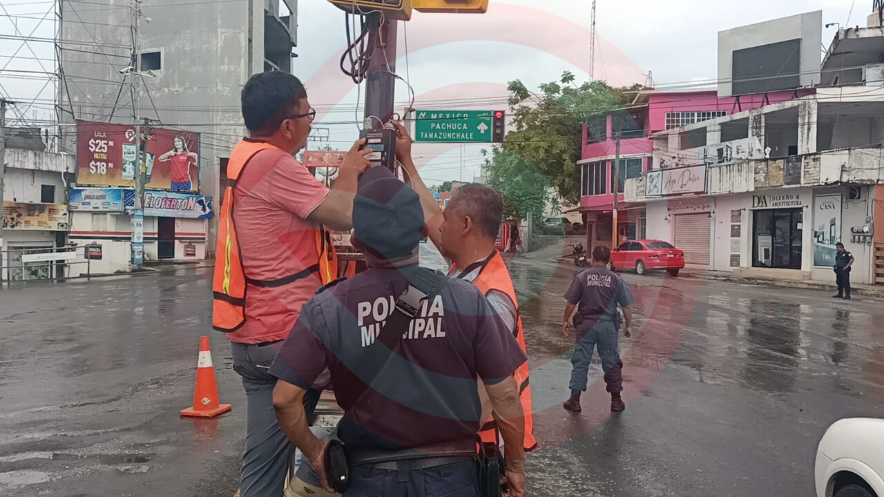 Huejutla de Reyes, Hgo.- Por las descargas eléctricas y los constantes bajones de luz, los semáforos de la ex Glorieta Juárez sufrieron daños, por lo que fueron rehabilitados por el área de Balizamiento, en coordinación con Tránsito Municipal.