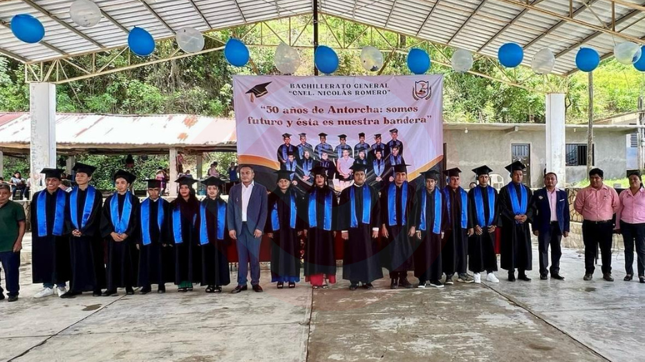 Felicitó a los jóvenes egresados, así como también a las autoridades educativas y padres de familia, por confiar en el proyecto educativo enarbolado por Antorcha Magisterial.