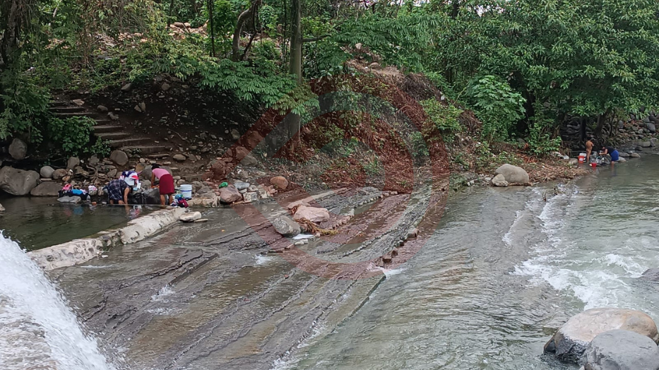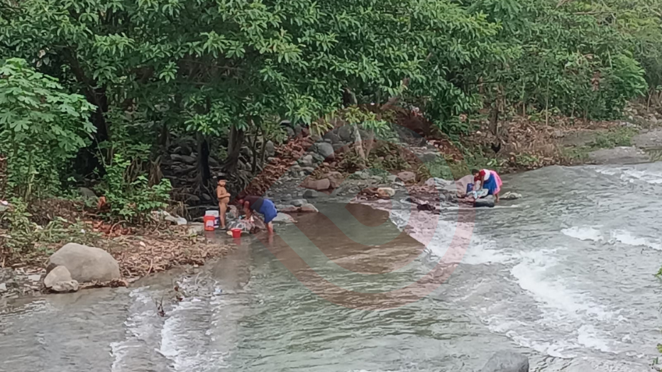 Habitantes van al río a bañarse y lavar ropa tras semanas sin agua