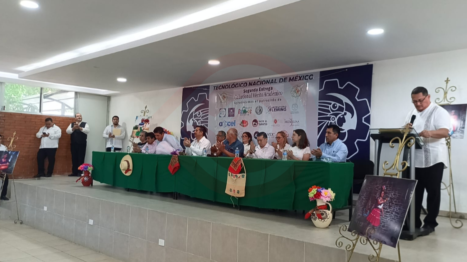 Después de los honores a la bandera, los alumnos galardonados, procedentes de escuelas primarias indígenas, primarias generales, secundarias generales, telesecundarias, secundarias técnicas, de las diversas instituciones del Nivel medio superior, nivel superior y una alumna de maestría, recibieron los respectivos reconocimientos en esta Segunda Entrega Galardón al Mérito Académico.