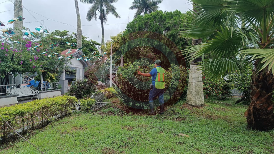 Trabajadores del área realizaron actividades de limpieza y poda en las diversas jardineras, quitando ramas y maleza seca, para dar mejor aspecto a las áreas verdes.