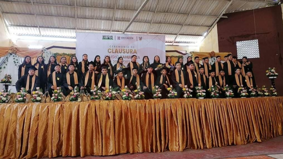 La ceremonia de clausura de la generación 2021-2024, se desarrolló en el auditorio de la zona centro, en la mesa de honor estuvo el director de ese plantel Ingeniero Víctor Jesús Torres Martínez, la madrina de esa generación la maestra Leyva López Zavala, el delegado de la cabecera Víctor Hugo Bautista, entre otras personalidades.