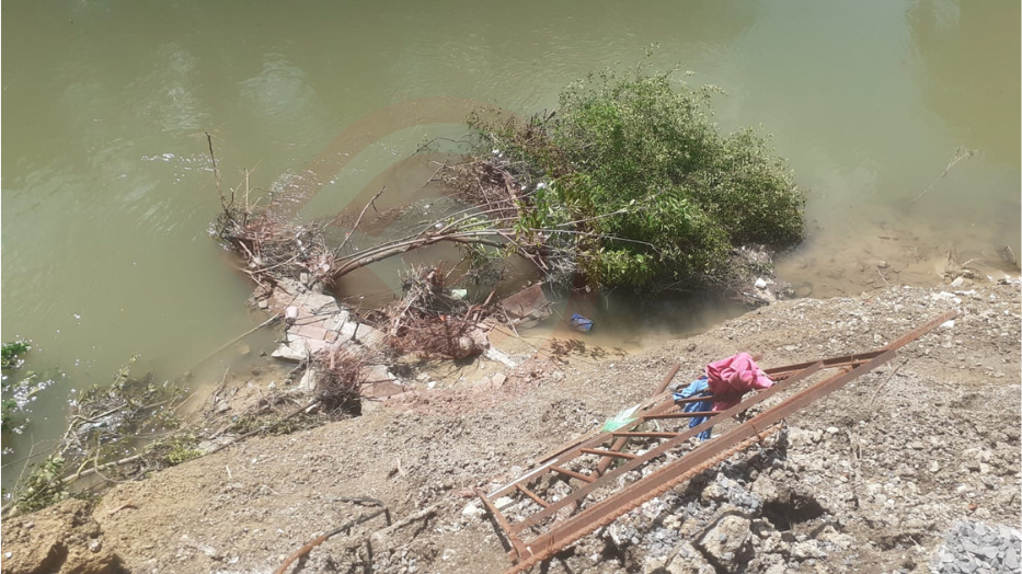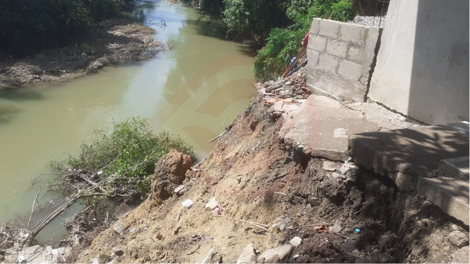 Atendiendo una llamada de una de sus hijas, acudimos al domicilio en cuestión y al realizar una inspección ocular del terreno que colinda con el río, se logró apreciar que, parte de una barda al igual que unos árboles terminaron en el fondo del río Huejutla.