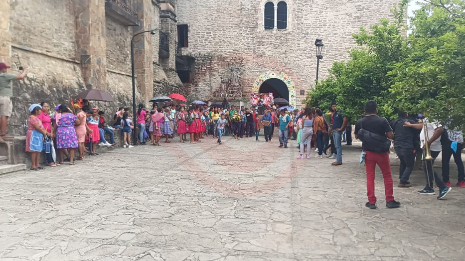 Acompañados de una banda de viento y la danza de las Inditas, los fieles católicos salieron al mediodía de este jueves 18 de julio, desde la parroquia del Sagrario Catedral de Huejutla a la comunidad.