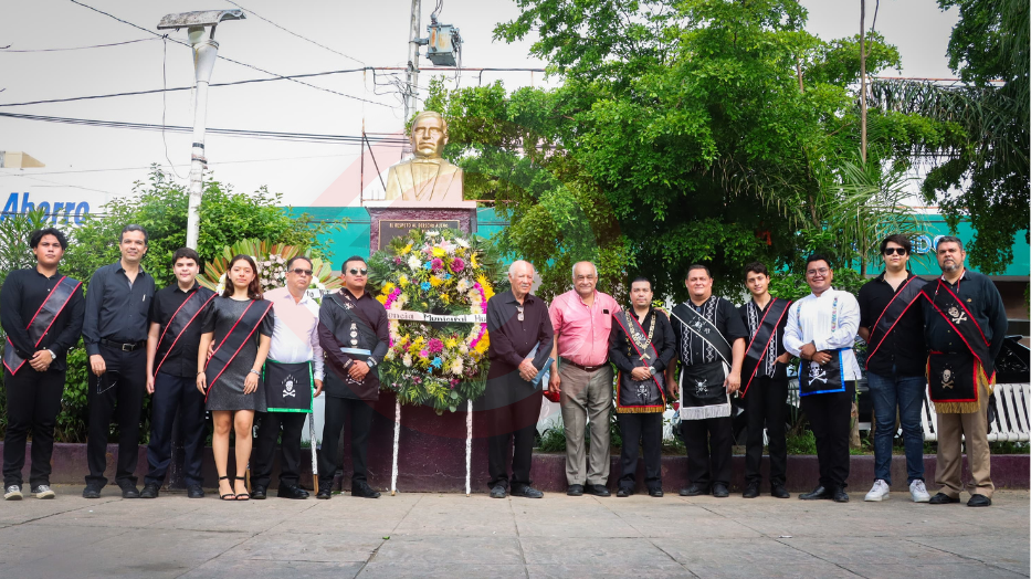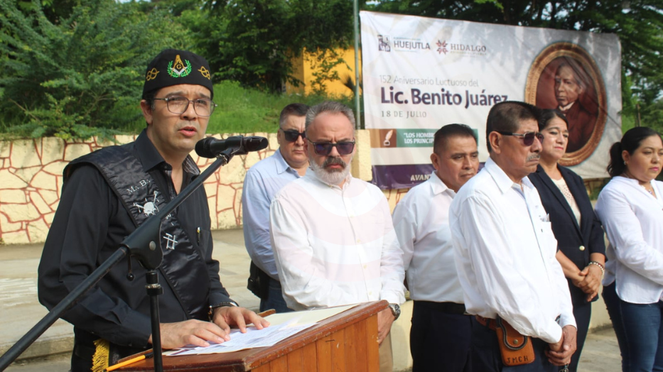 Huejutla, Hgo.- Con la presencia de directores de área, jefes de departamento, coordinadores de área e integrantes de las logias masónicas “Libre Huasteca Número 6”, “Hermes Trismegisto Número 3º y del grupo AJEF “José Martí Número 6”, el Gobierno Municipal de Huejutla que encabeza el Ingeniero José Pilar López Espinoza, conmemoró el 152 aniversario luctuoso del Licenciado Benito Pablo Juárez García, ex Presidente de México.