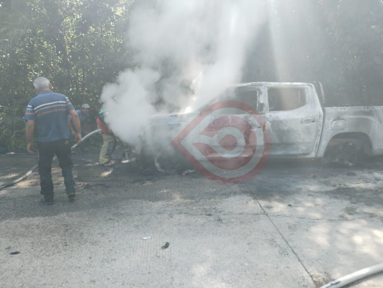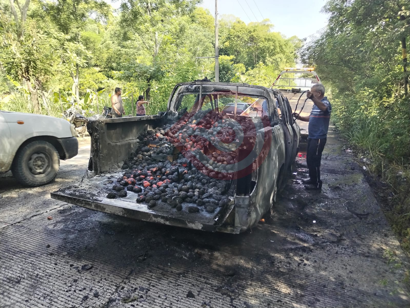 Fue a la altura de la comunidad de Contepec, de este municipio, cuando a una camioneta Chevrolet, color blanco, le empezó a salir humo en la caja, donde llevaba diversos productos de verduras y en segundos ardió todo el vehículo, alarmando a la población por las gigantescas llamas.