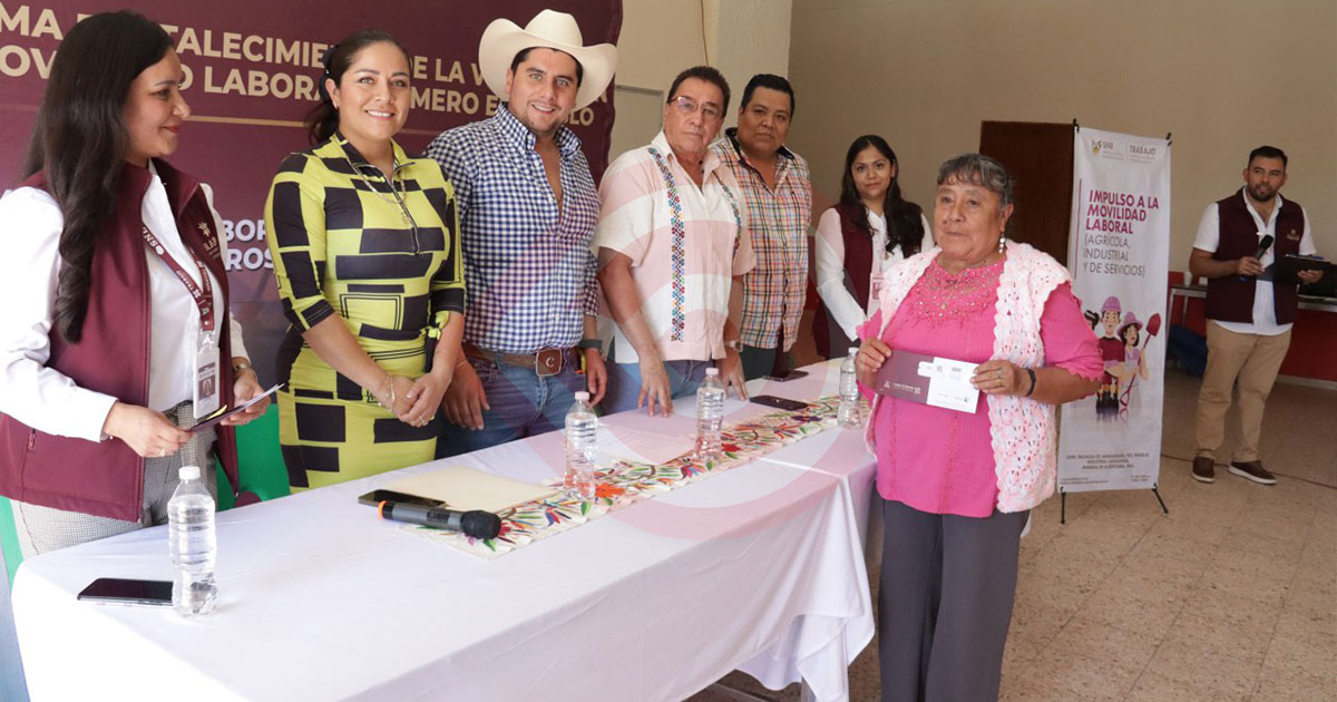En el municipio de San Agustín Metzquititlán, el secretario realizó la entrega de 15 tarjetas a trabajadores agrícolas que fueron vinculados con empresas del sector agrícola en Canadá.