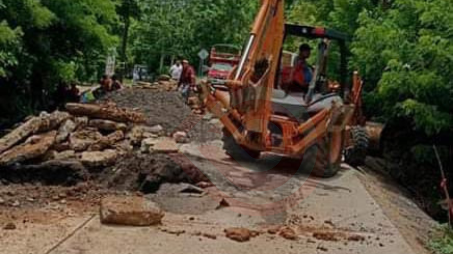 Este martes, después de la rehabilitación de este tramo carretero, derivado de un socavón provocado por las condiciones generales por la onda tropical número 8, personal a cargo se dio a la tarea del relleno del socavón.