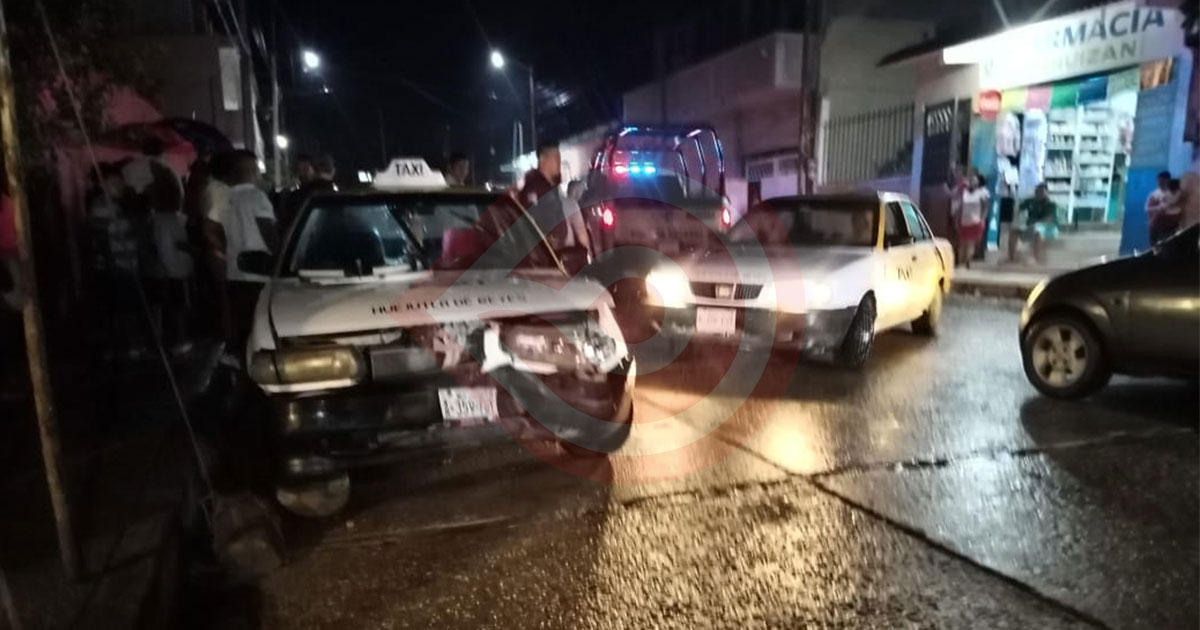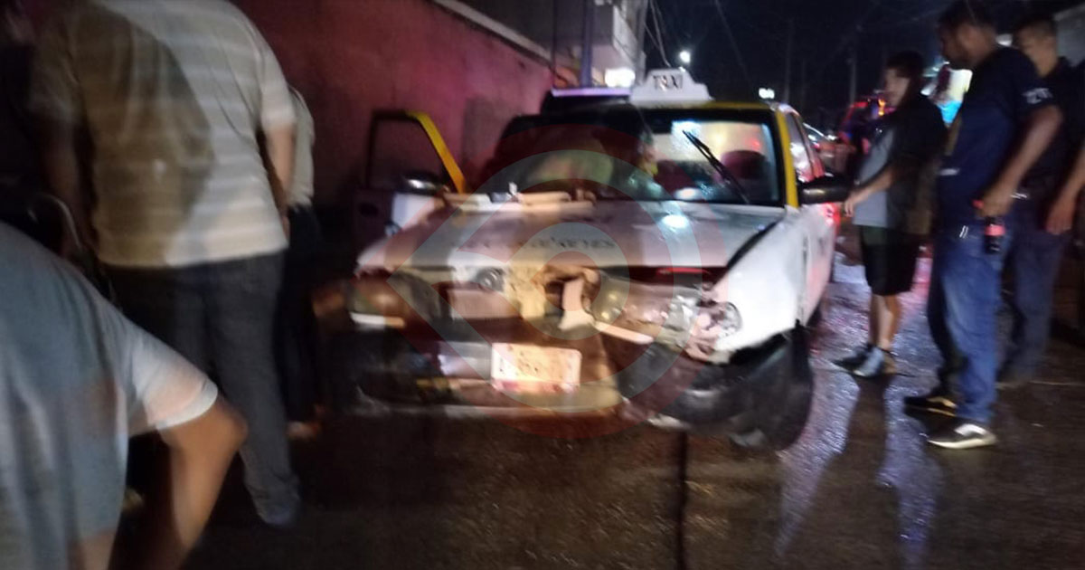 Los hechos ocurrieron sobre la calle Toribio Reyes, a la altura de la primaria de la colonia Tahuizán, donde presuntamente el conductor de un auto Chevrolet, Chevy se desplazaba a exceso de velocidad, bajo los efectos del alcohol y se impactó de frente contra un taxi de la marca Nissan Tsuru, dejando un lesionado que fue atendido en el lugar.