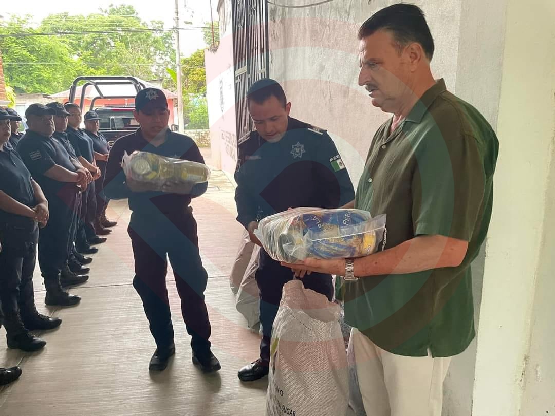 El oficial mayor Noel Rivera Herverth hizo la entrega de despensas en las instalaciones de la Comisaría a cada uno de los elementos policíacos, destacando en sus labores su desempeño, entrega y dedicación al servicio que brindan a las y los orizatlenses.