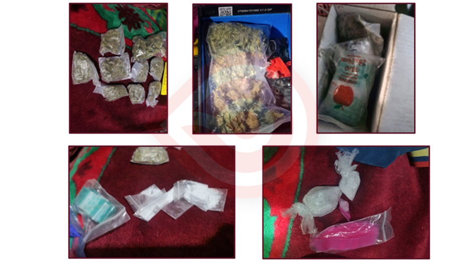 Como resultado de este dispositivo, fueron asegurados 184 dosis de presunta marihuana y 64 dosis de sustancia granulada con características de droga “cristal”, equipos de telefonía celular y una motocicleta