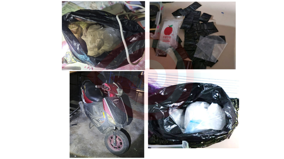 Durante la revisión, les fueron decomisadas 150 dosis de presunta marihuana, 80 dosis de droga sintética “cristal”, además de una báscula de precisión, una motocicleta con medios de identificación ilegibles, así como aditamentos para la dosificación de narcóticos.