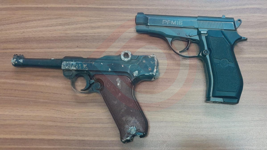Los sospechosos, quienes responden a las siglas de D. I. L. M., C. A. R. B., M. A. M. S., tenían en posesión un arma de fuego corta nueve milímetros, un arma corta calibre 4.5 milímetros y cuatro dosis de droga sintética “cristal”.