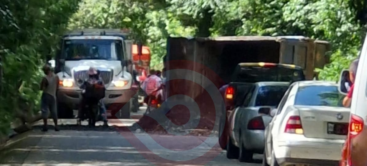 Yahualica, Hgo. – Por una presunta falla mecánica, un camión volteo se volcó sobre la vía estatal Atlapexco-Calnali, la tarde de este lunes; el accidente dejó daños materiales y contusiones en el conductor, policías municipales y Protección civil municipal arribaron al lugar para tomar conocimiento de los hechos y dar vialidad.