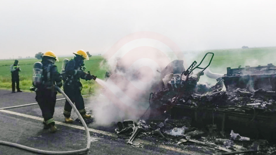 Al finalizar las maniobras, se confirmó la pérdida total del tractocamión y la caja de refrigeración en la que se transportaban productos lácteos; no obstante, no hubo ninguna persona lesionada.
