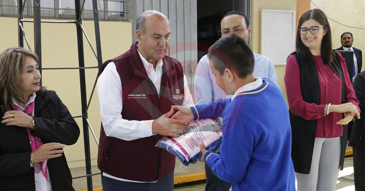 Pachuca de Soto, Hgo.- Con el objetivo de que alumnas y alumnos de educación básica cuenten con las mejores condiciones para sus actividades académicas, el titular del Instituto Hidalguense de Educación (IHE), Natividad Castrejón Valdez, visitó la localidad de Estación de Apulco, en el municipio de Metepec, para entregar uniformes escolares en la Telesecundaria 46.