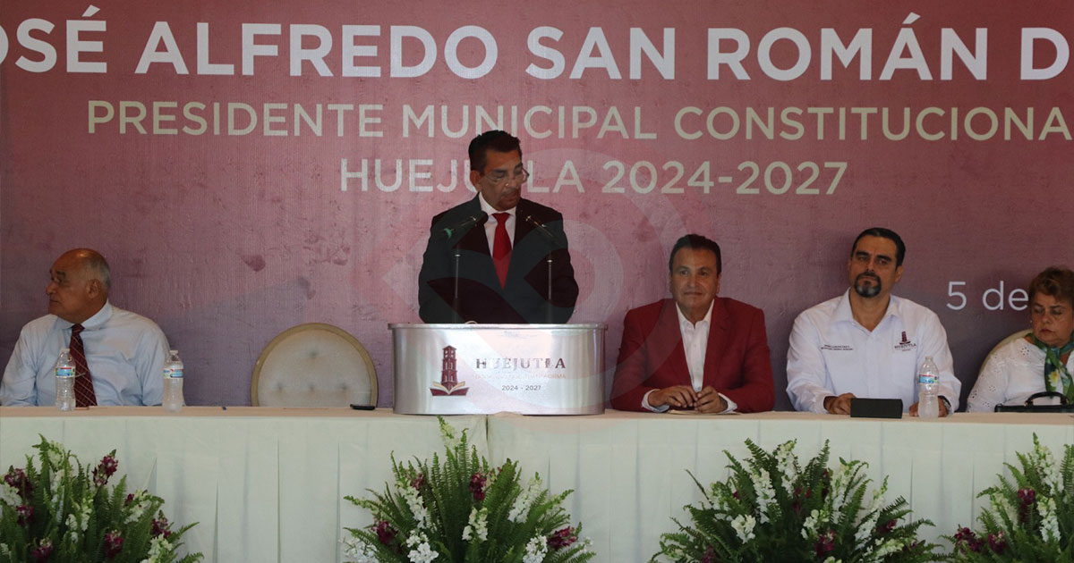 Huejutla de Reyes, Hgo.- En un evento en el que se contó con la representación tanto de las comunidades y de la zona urbana, así como del sector político y empresarial, se llevó a cabo la toma de protesta del nuevo Ayuntamiento, encabezada por José Alfredo San Román Duval, quien en su discurso destacó la importancia de promover la educación y abatir la desigualdad, además de refrendar su apoyo al gobierno estatal y federal para trabajar en conjunto.