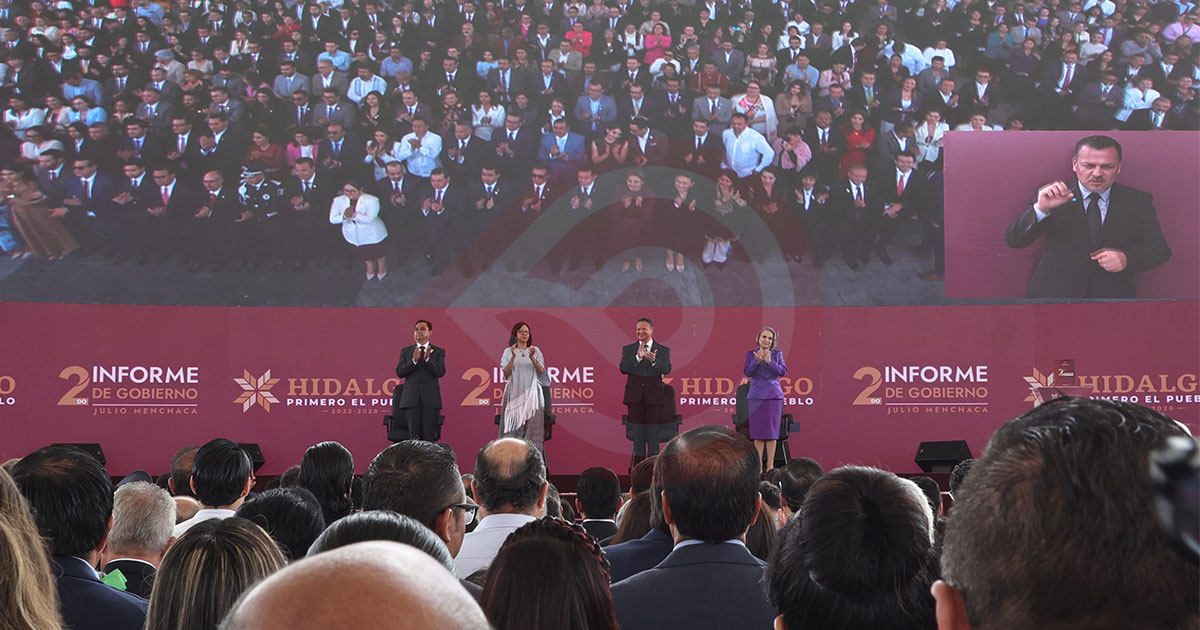 Pachuca de Soto, Hgo.- El gobernador, Julio Menchaca Salazar, rindió su segundo informe de labores, en las instalaciones de la feria, en la capital del estado. En su mensaje, resaltó que la fórmula para transformar a cada una de las regiones de la entidad consiste en escuchar al pueblo, ser sensible a sus necesidades, poniendo orden, llevando la justicia y equidad como bandera.