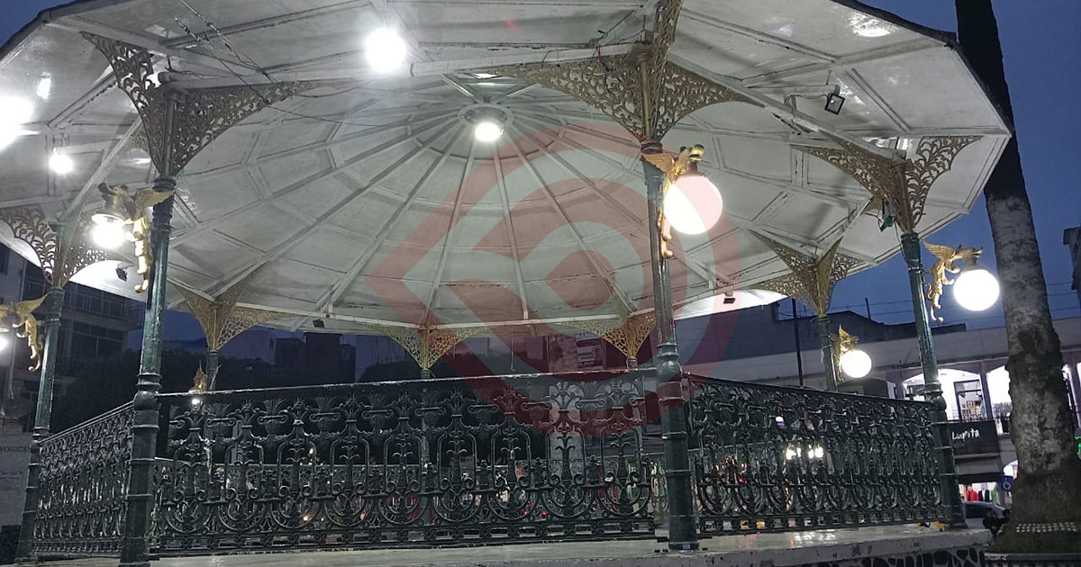 Zacualtipán de Ángeles, Hgo.- Llevan a cabo la colocación de iluminación del jardín municipal, luego de que este espacio público había permanecido en penumbras durante mucho tiempo por falta de luminarias.