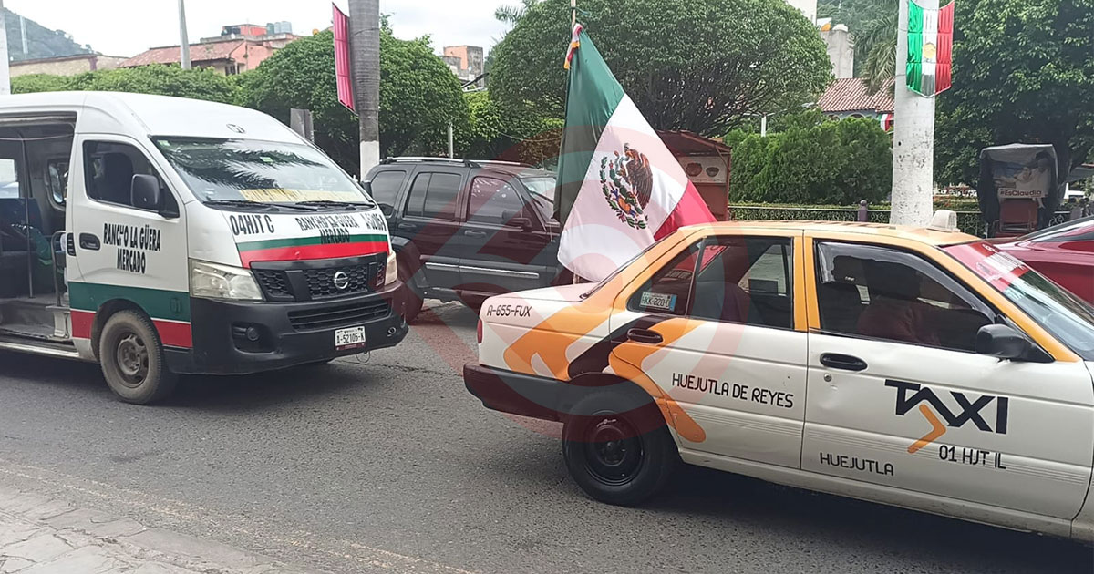 En el caso antes citado, la bandera mexicana ha sido amarrada por el taxista en el costado izquierdo de la parte trasera de la unidad, y luce vistosa al transitar por las principales arterias de Huejutla de Reyes, la cual es observada por propios y extraños.