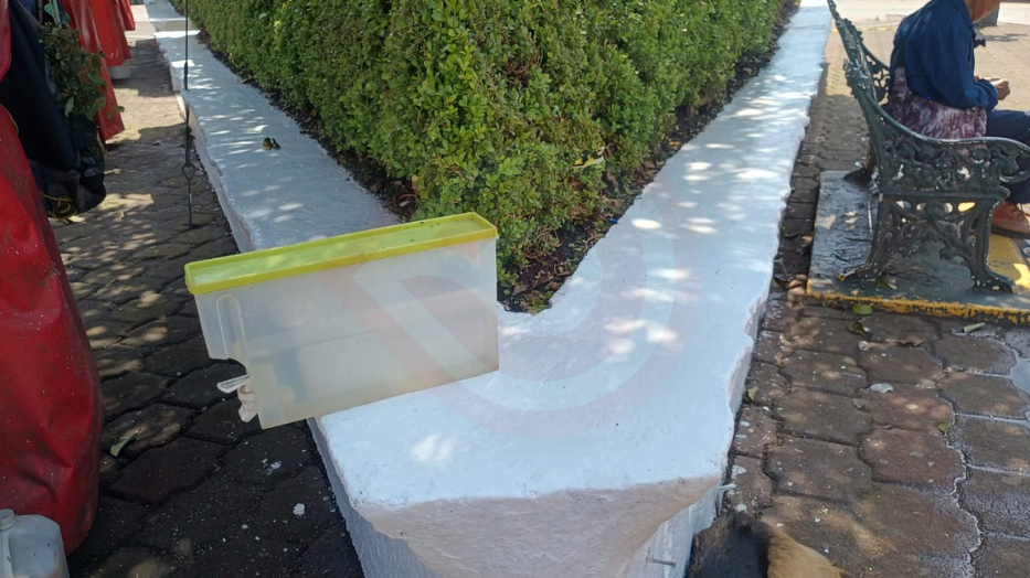 Aplican pintura a la fachada de la presidencia y el jardín municipal
