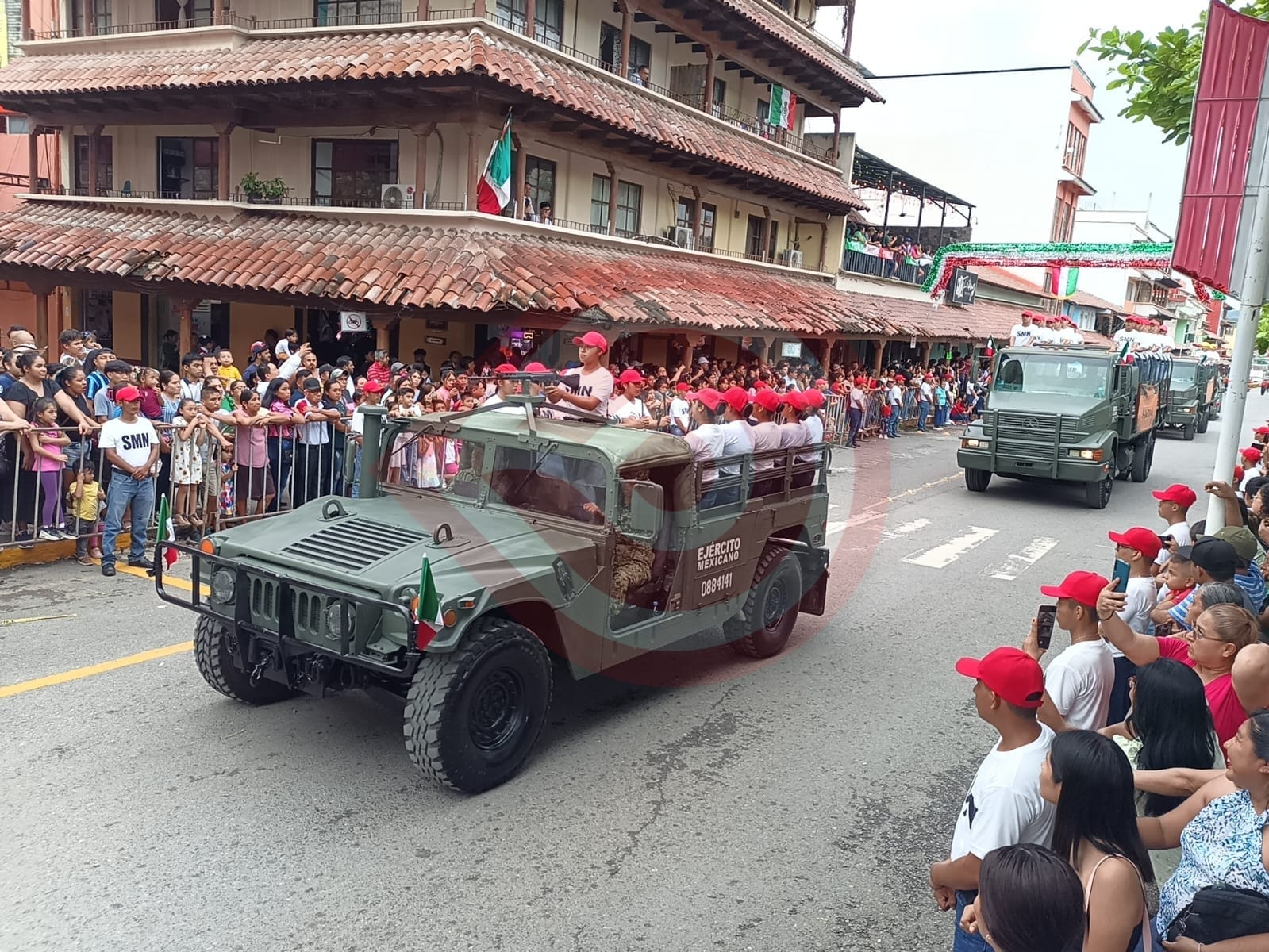 En el Desfile Cívico-Militar participaron en contingentes diversas instituciones educativas del nivel básico de los niveles Primaria y Secundaria, así como los elementos del 84 Batallón de Infantería y Bomberos de Huejutla.