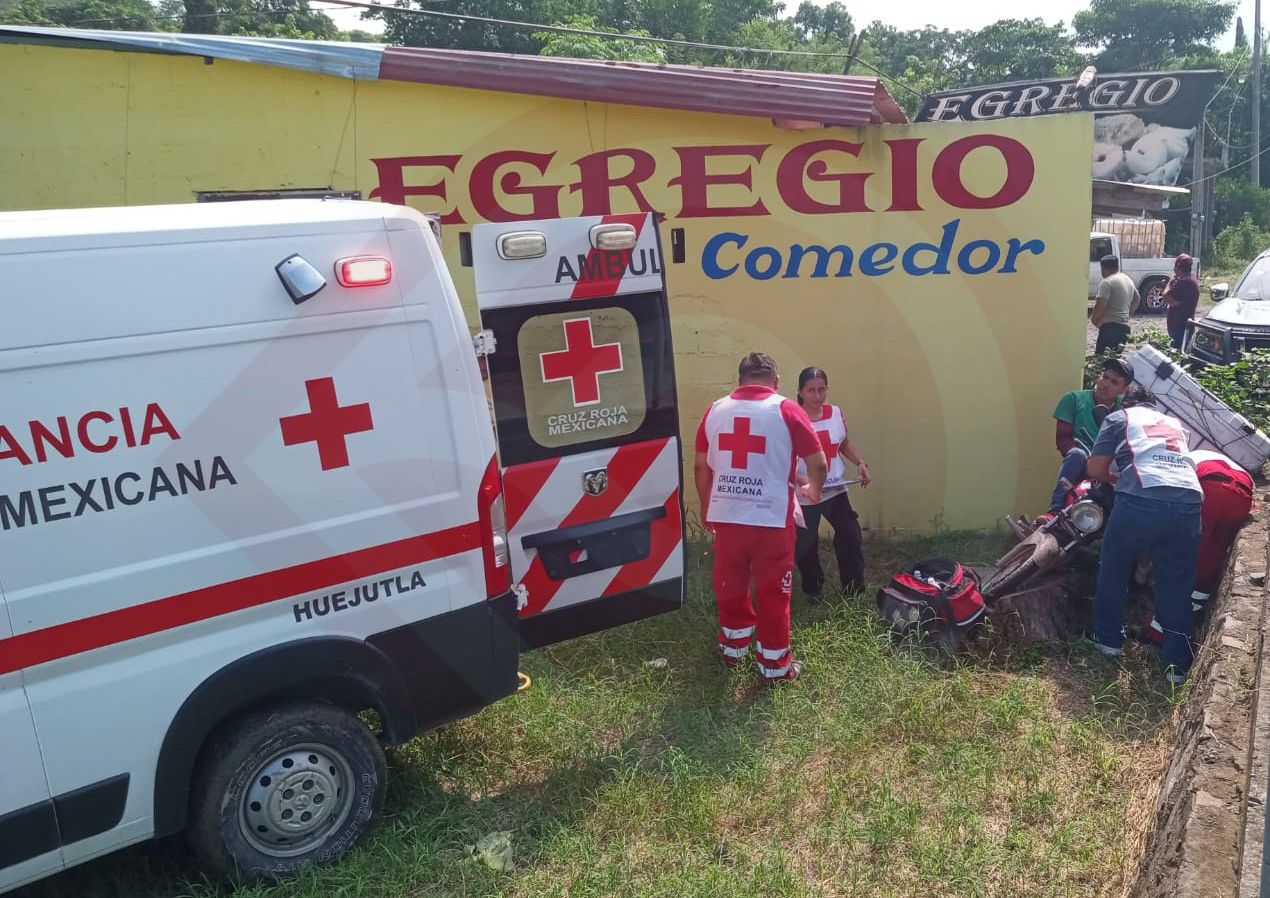 Huejutla, Hgo.- La tarde de este martes un repartidor de tortillas al que se le ponchó la llanta delantera de su motocicleta sufrió un accidente en la carretera federal México – Tampico, a la altura de la localidad de La Esperanza, perteneciente a este municipio.