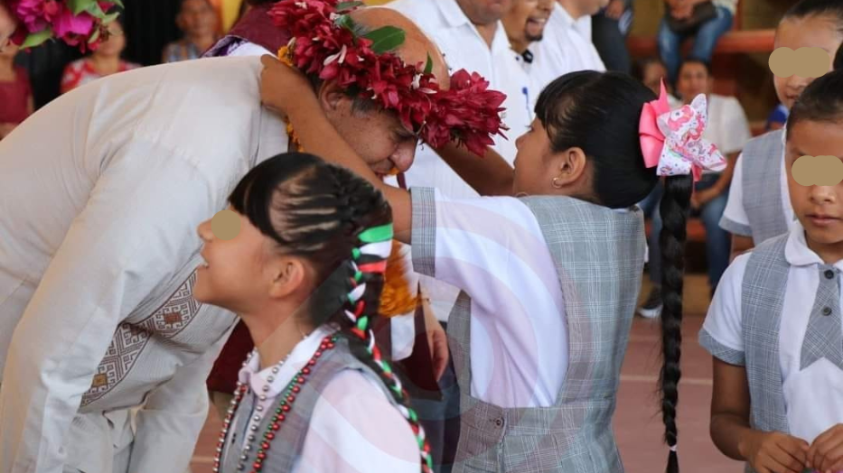 El evento se desarrolló en la galera de esa localidad, en donde el secretario, participó en los honores al lábaro patrio y un evento cultural, como parte de su recibiendo; Natividad Castrejón realizó la entrega simbólica de los uniformes escolares y calzados a los alumnos.