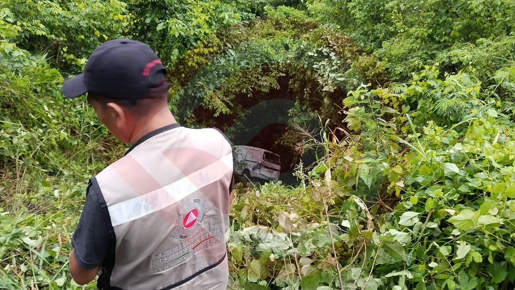 La camioneta, cayó a un barranco de más de 30 metros de profundidad, resintiendo daños materiales considerables al volcar en su trayecto al fondo del barranco.