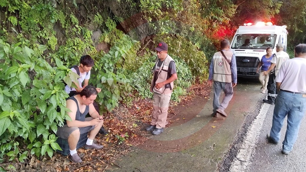 El operador Víctor de 31 años de edad y su acompañante Jesús C de 23 años de edad, ambos con domicilio en el municipio de Huejutla, Hidalgo, salieron con gran dificultad a orilla de carretera después de escalar por la resbalosa pendiente, permaneciendo en el lugar de los hechos.