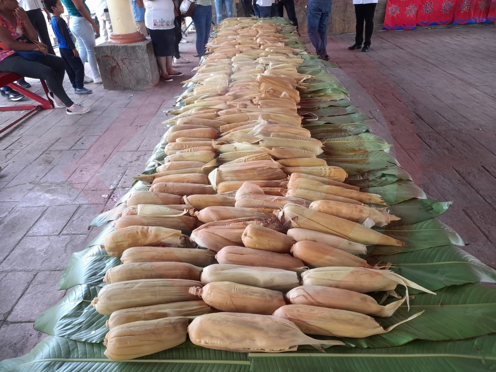 Al concluir el protocolo del evento, los asistentes se congregaron en las mesas que estaban en ambos costados del espacio de la galera, todas repletas de elotes hervidos colocados sobre hojas de papatla, para tomarlos y degustarlos en ofrenda, ya que el ritual era alusivo al maíz, concretamente al elote.