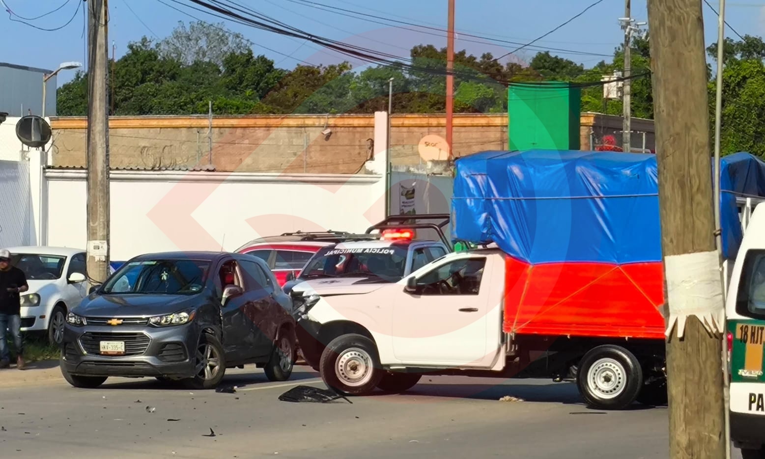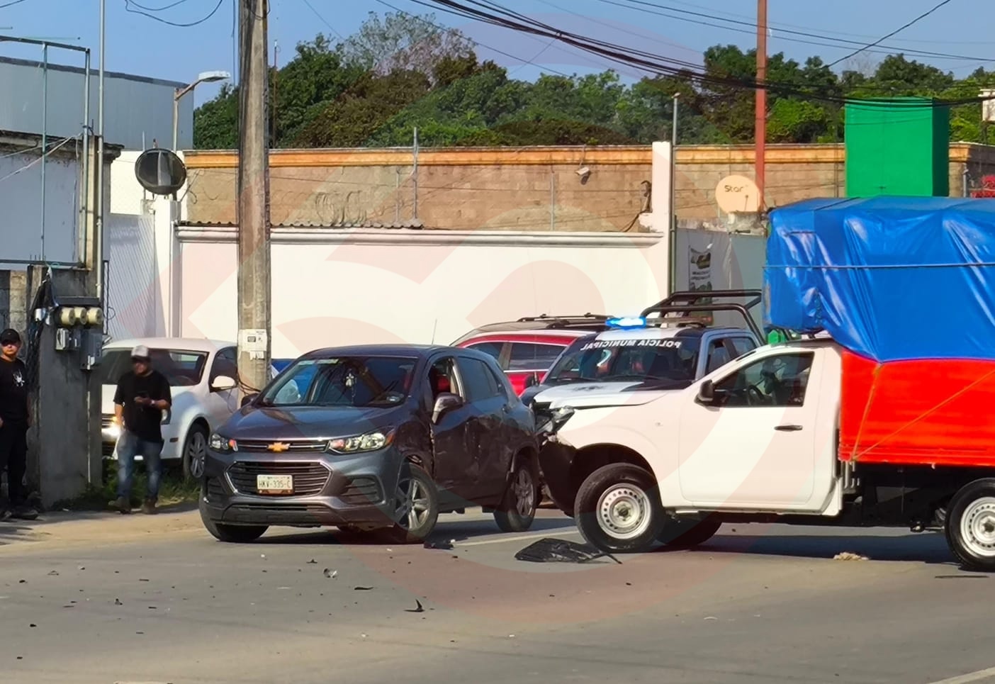 El accidente ocurrió cerca de la entrada de la colonia El Carmen, donde una camioneta estaquitas colisionó contra otro vehículo, dejando solo pérdidas materiales.