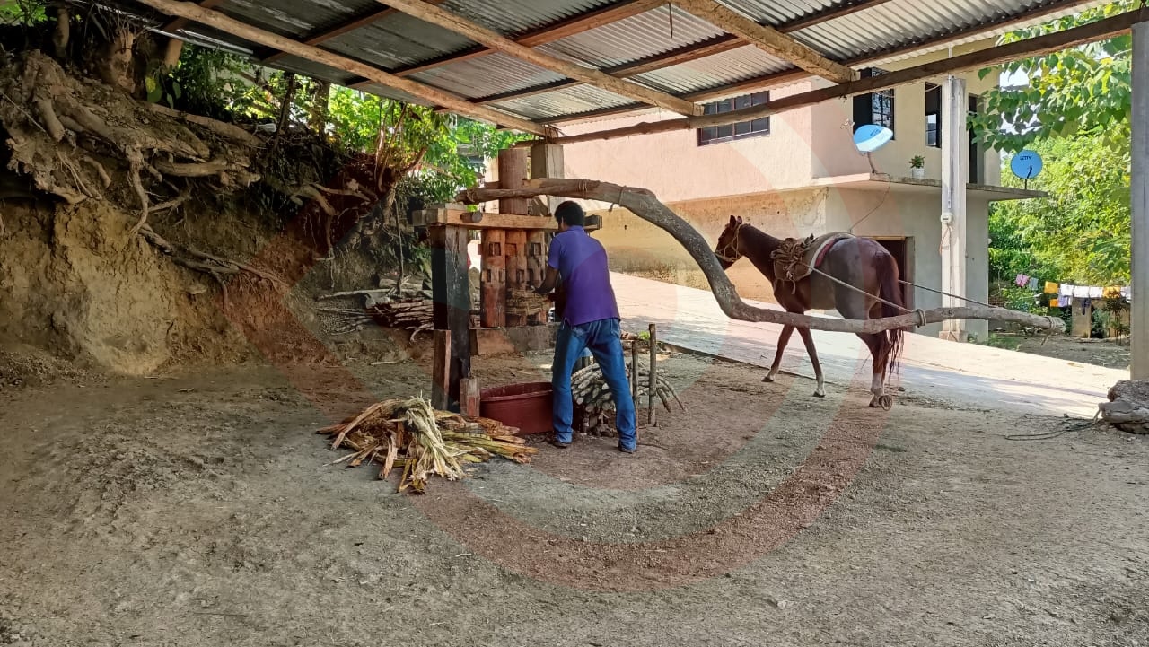 Con la ayuda de un caballo y el apoyo de un molino de madera se hace la molienda de la caña para poder extraer su jugo, mismo que ponen a la venta a precios accesibles.