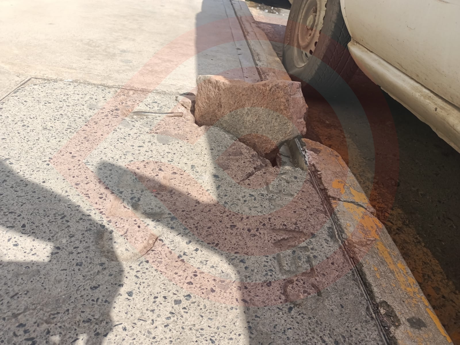 Enorme piedra fue colocada en la acera en la calle Dr. Gea González.