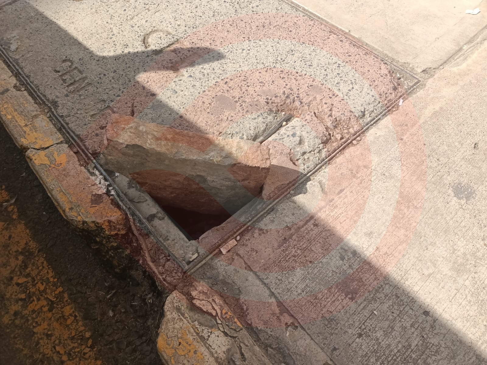 En la calle Dr. Gea González, en el registro de la CFE el orificio es más grande, ahí insertaron una piedra para prevenir que los peatones se atoraran, sin embargo, sigue representando un riesgo para quienes transitan por el lugar.