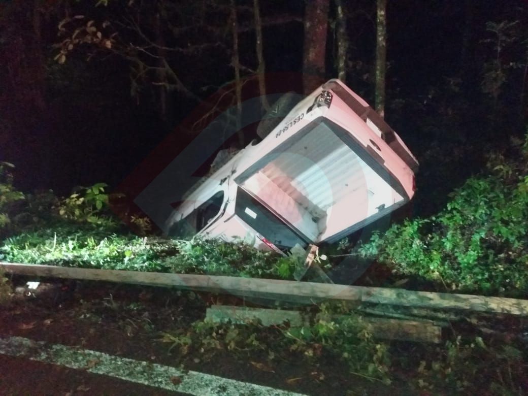 Tlanchinol, Hgo.- Por probable exceso de velocidad y falta de precaución del conductor, una camioneta que circulaba en la carretera federal México-Tampico, se salió de la cinta asfáltica y volcó hacia un pequeño barranco.