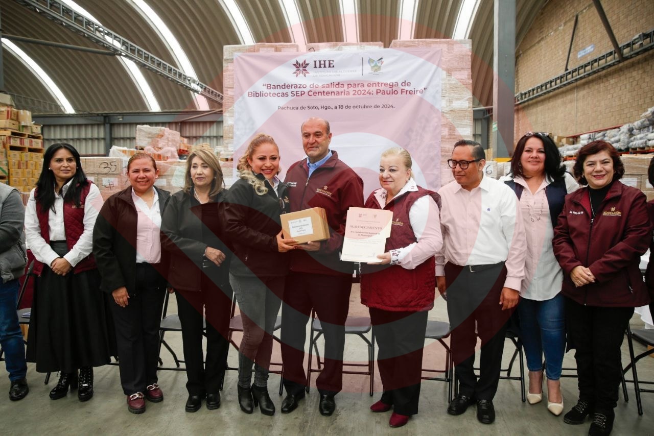 Pachuca de Soto, Hgo.- El titular del Instituto Hidalguense de Educación (IHE), Natividad Castrejón Valdez, dio el banderazo de salida para la entrega de las “Bibliotecas SEP Centenaria 2024, Colección Paulo Freire”, por lo que las y los alumnos de nivel básico que acuden a las escuelas públicas y particulares contarán con estos 18 títulos de la colección.