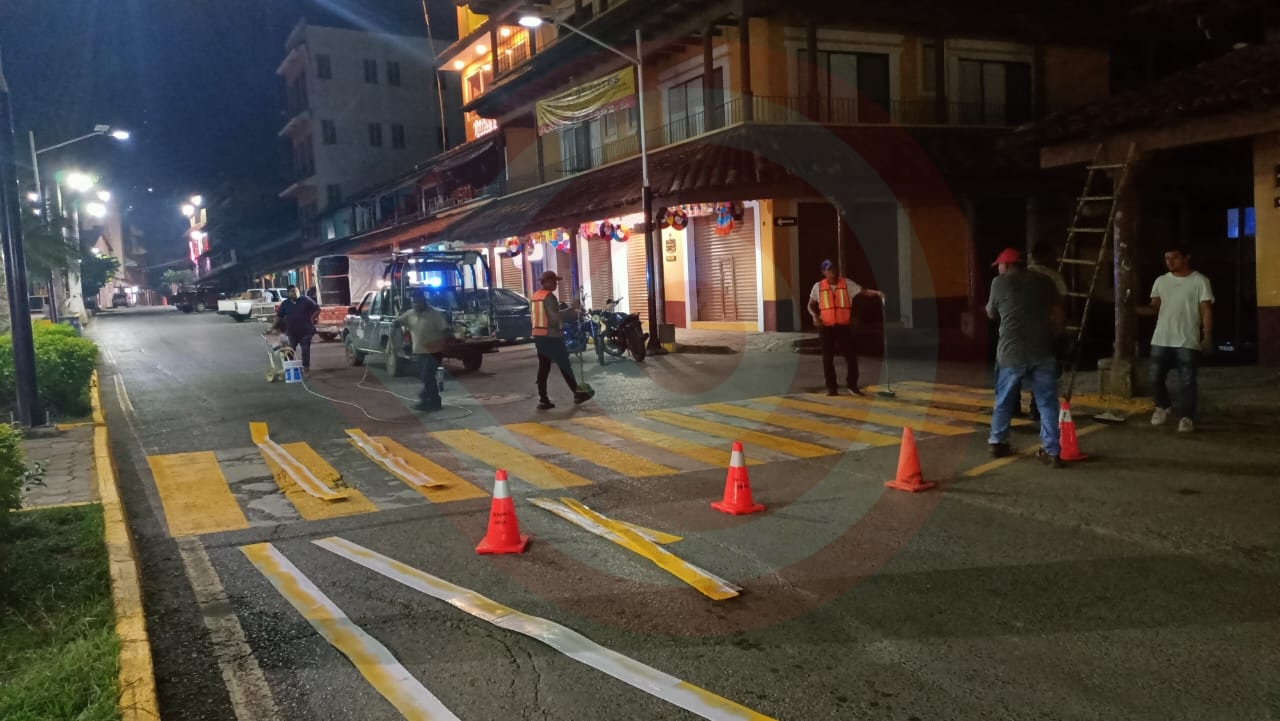 Con la finalidad de mejorar la imagen del municipio, durante las noches, a marchas forzadas se llevan a cabo los trabajos correspondientes a la señalética vial.