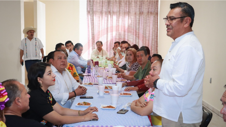 Huejutla de Reyes, Hgo.- El ayuntamiento de Huejutla de Reyes, encabezado por el Lic. Alfredo San Román Duval, dio la bienvenida la mañana de este lunes a los maestros de la Sección 15, del Sindicato Nacional de Trabajadores de la Educación (SNTE), liderados por el secretario Said Vargas, en un desayuno organizado para marcar el inicio de las festividades de Xantolo 2024 en nuestra región.