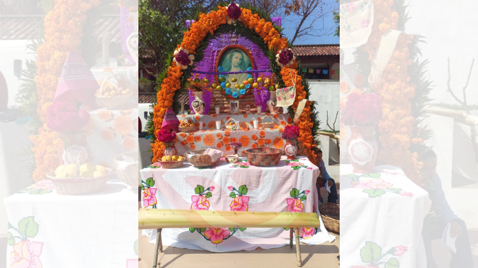 En el fondo del altar colocan retratos de familiares fallecidos y también de algún santo. También les ofrendan prendas de vestir, para los hombres calzón y camisa de manta, sombrero, huaraches, morrales. Para las mujeres enaguas y blusas, aretes, gargantillas, listones, entre otros accesorios.